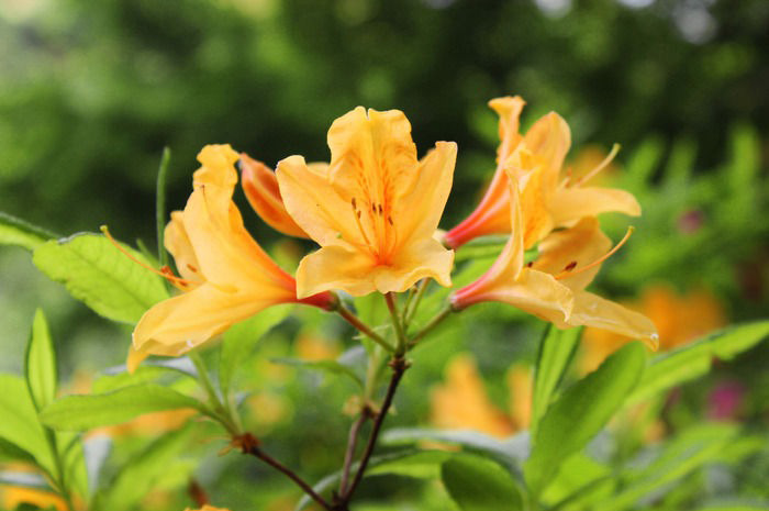 “红罗步障三十里,忆得南溪踯躅花。马上春风吹梦去,依稀人摘雨前茶。”(黄庭坚《观化》)羊踯躅花又名闹羊花、踯躅花、黄杜鹃花等,性味辛、温,有毒,归肝经,具有祛风除湿、定痛、杀虫的功效,用于风湿痹痛、偏正头痛、跌仆肿痛、龋齿疼痛、皮肤顽癣、疥疮的治疗。《神农本草经》载其:“主贼风在皮肤中淫淫痛,温疟,恶毒,诸痹。”《本草蒙筌》载其:“主风湿藏肌肉里,渐渐麻痹。”现代研究证明,羊踯躅花具有镇痛、降血压、减慢心率、杀虫、抗菌等多种药理作用。据《华佗神医秘传》载,大名鼎鼎的麻沸散,就是由羊踯躅、茉莉花根、当归等制成;《外科正宗》之三圣散,由羊踯躅花、槿树花、大风子制成,可治疗不论偏正新久之男妇头痛;《闽东本草》载,鲜羊踯躅花捣烂敷患处,可治疗皮肤顽癣及瘙痒。